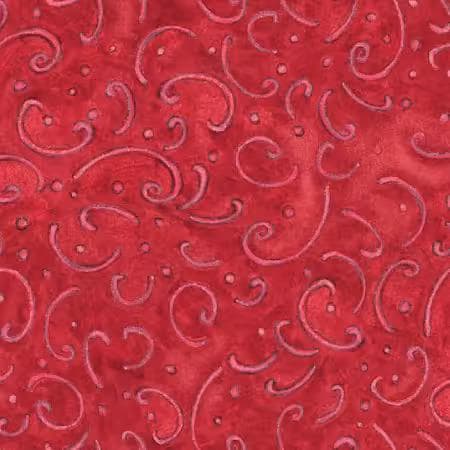 Dive into the rich elegance of this calico red scroll fabric, featuring an enchanting array of swirling abstract scrolls that dance across a deep crimson background in varying shades of red and soft pink hues.