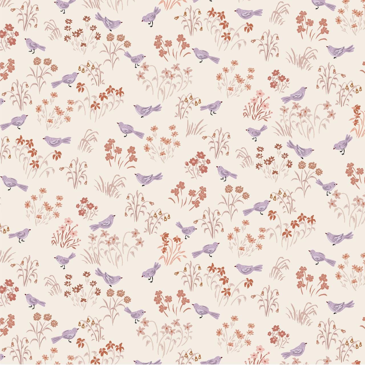 My Darling Deer is inspired by all things in nature. There are so many things that make up this sweet collection, the deer among the meadows of flowers, the tossed wildflowers, the bouquets of flowers, the tiny birds singing among the flowers and the tone-on-tone ferns. The color combination of the soft lavenders into deep plum, navy blue mixed with calming blues and pale hues of pink with cream.